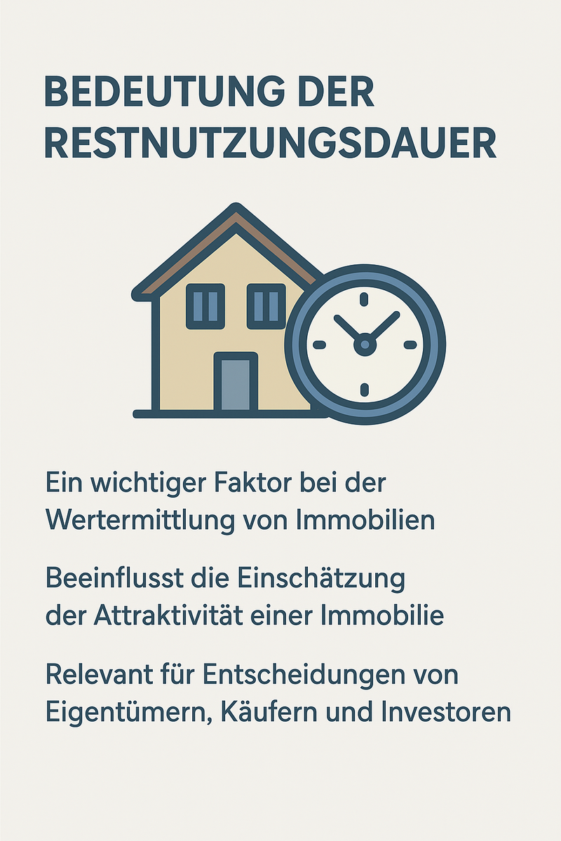 Für Eigentümer und Käufer ist die Kenntnis der Restnutzungsdauer entscheidend, um langfristige Investitionsentscheidungen treffen zu können. Sie gibt Auskunft darüber, wann größere Instandhaltungsmaßnahmen erforderlich werden und wie sich der Wert der Immobilie in Zukunft entwickeln könnte. Banken und Gutachter berücksichtigen sie daher regelmäßig bei der Beleihungswertermittlung und Finanzierungsentscheidung.